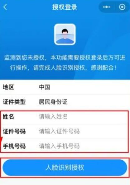 2、点击“授权登录办理,填写本人“姓名”“证件号码”和“手机号码,然后进行“人脸识别授权”;