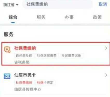 1、扫描上方二维码下载浙里办APP,通过手机“浙里办”APP搜索“社保费缴纳”,点击模块进入。
