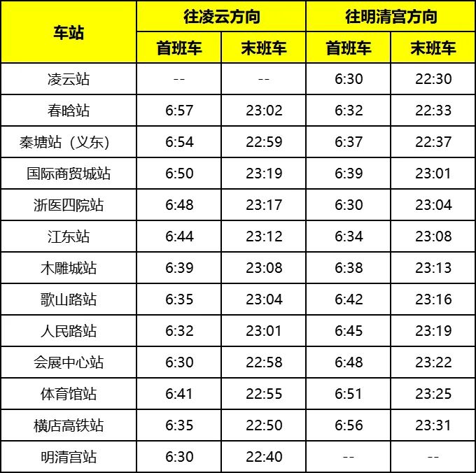 1.金华站始发末班车调整为22:00,跨线站站停载客至明清宫站(不经过凌云站、春晗站,秦塘站无需下车换乘)。