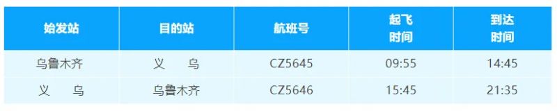 3、新开义乌——乌鲁木齐航线