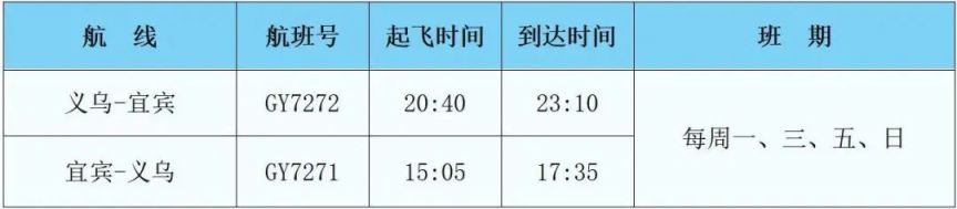 1、新开义乌⇋宜宾航线
