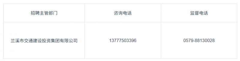 【导语】:兰溪市交通建设投资集团有限公司现面向社会公开招聘工作人员27名(具体岗位及人数详见招聘计划表)。详见正文。